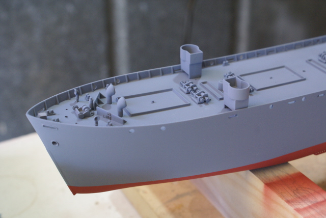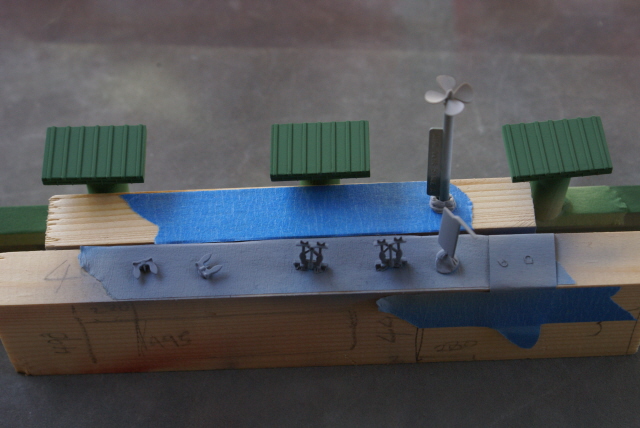 Once dry I'll mask up the hatches and finish off with USN 5-0 ocean grey. The other parts are already finished in this colour and ready for attaching to the hull!