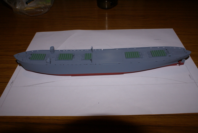 I was happy to go with the 5-0 Ocean for the grey and with their recomendations on the height of the anti fouling red and lack of boot topping as per the civi ships. After all, we're in it for the fun
