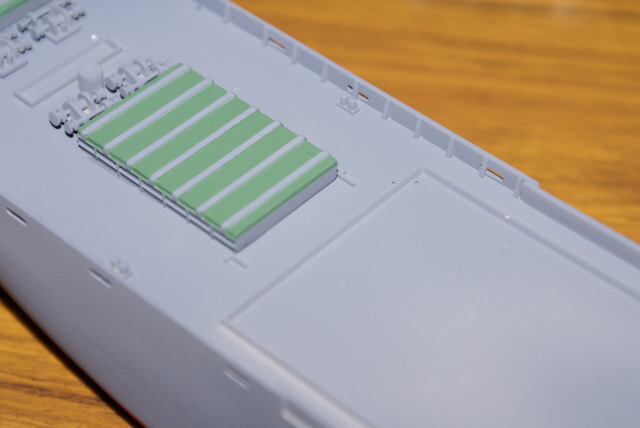 I've removed all the riff raff added by trumpeter ready for the PE. On the under side you can see all the ejector pin holes which needed filling.