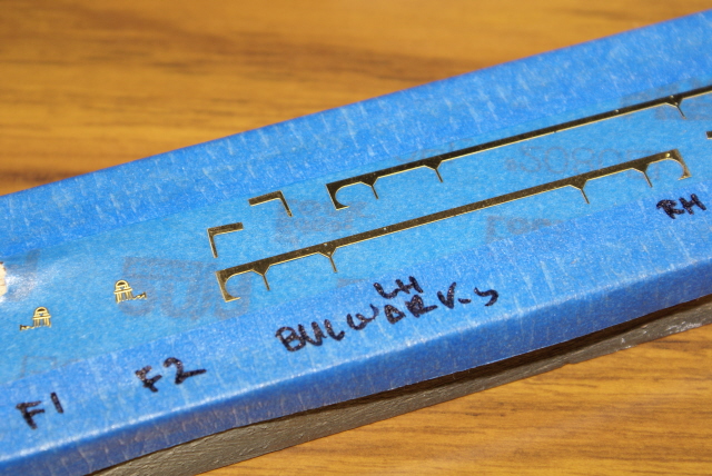 Here again the GMM PE has been fickle. The bulwarks are supposed to be one single piece, but they're way too long for the boat deck (0.3-0.5mm - massive in the modelling world