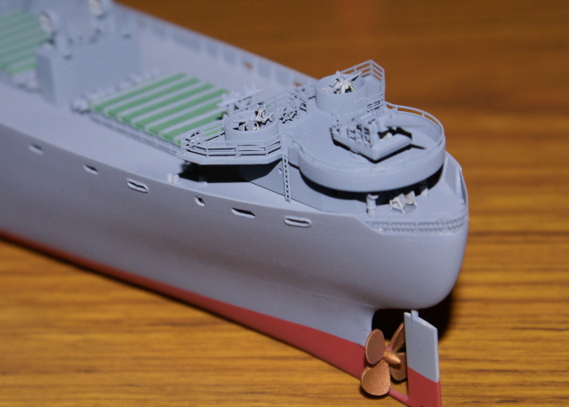 Not wanting to be picky or anything but I noticed on the picture of the bow area that a ladder there is going up to a railing but there is no break in the railing to let people climb onto the platform. I had a look at the Eduard plans and there is supposed to be a break there.
