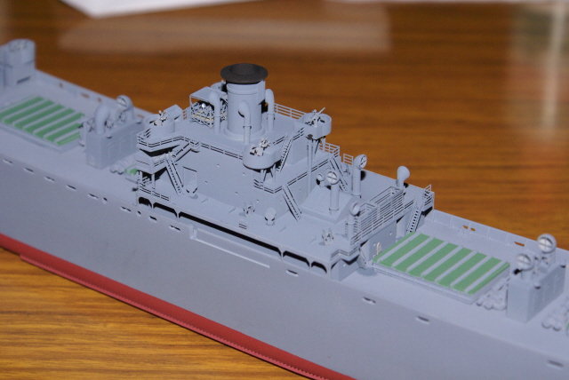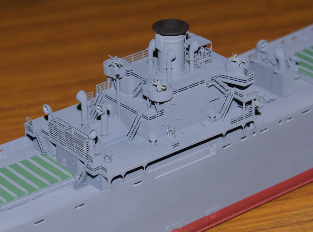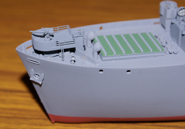That's okay Warren. To be honest I've not been overly impressed with the GMM PE so I wouldn't be surprised. However, in their defence they have put a 'sag' in the areas where you're referring to, so I wonder if that's meant to be a removable area of chain rail? This would seem logical since there's an access hatch at the rear of the platform and a watertight door just below it, allowing 'jack' to scupper down internally rather that using the external ladders?