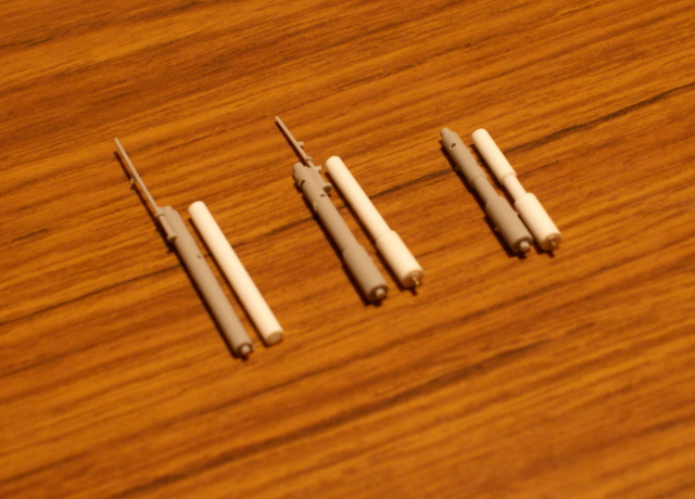 Just a small update today to show you what I've been up to. Now, I might have mentioned before I'm not a big fan of moulded round parts (masts, barrels etc). This is nothing against the kit manufacturers as they do a pretty good job within the limits of what can be achieved with plastic. But you'll always end up with a not quite round mast, and weak spars etc that can never stand up to the tensions placed on them with rigging. Here's the moulded kit masts: