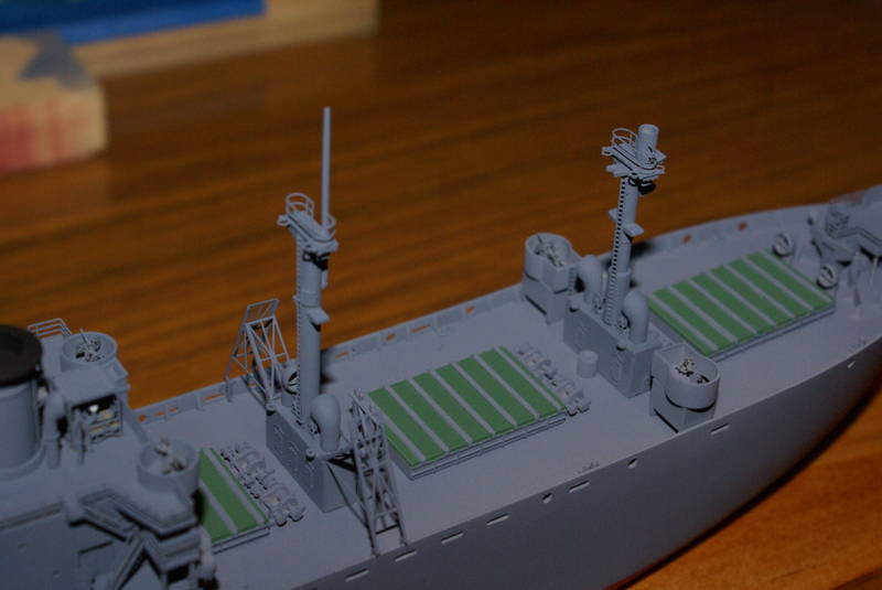 Ok, masts all painted as are the life raft slides. Lots of grey here so all pretty monotone, but she's starting to look like a real ship now... well, almost