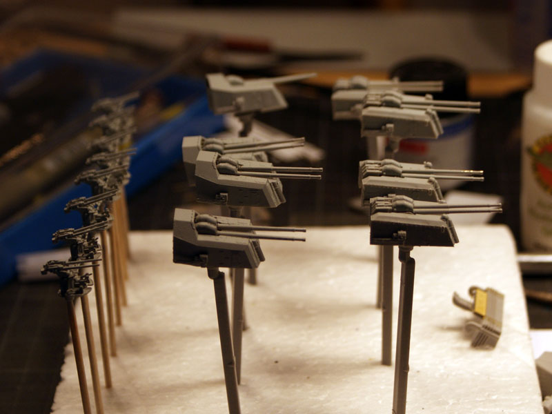 I have been working on the FLAK guns, assembly are pretty straightforward - I have chosen to fix the elevation as the fit is somewhat wobbly and it wont be possible to align the barrels otherwise.