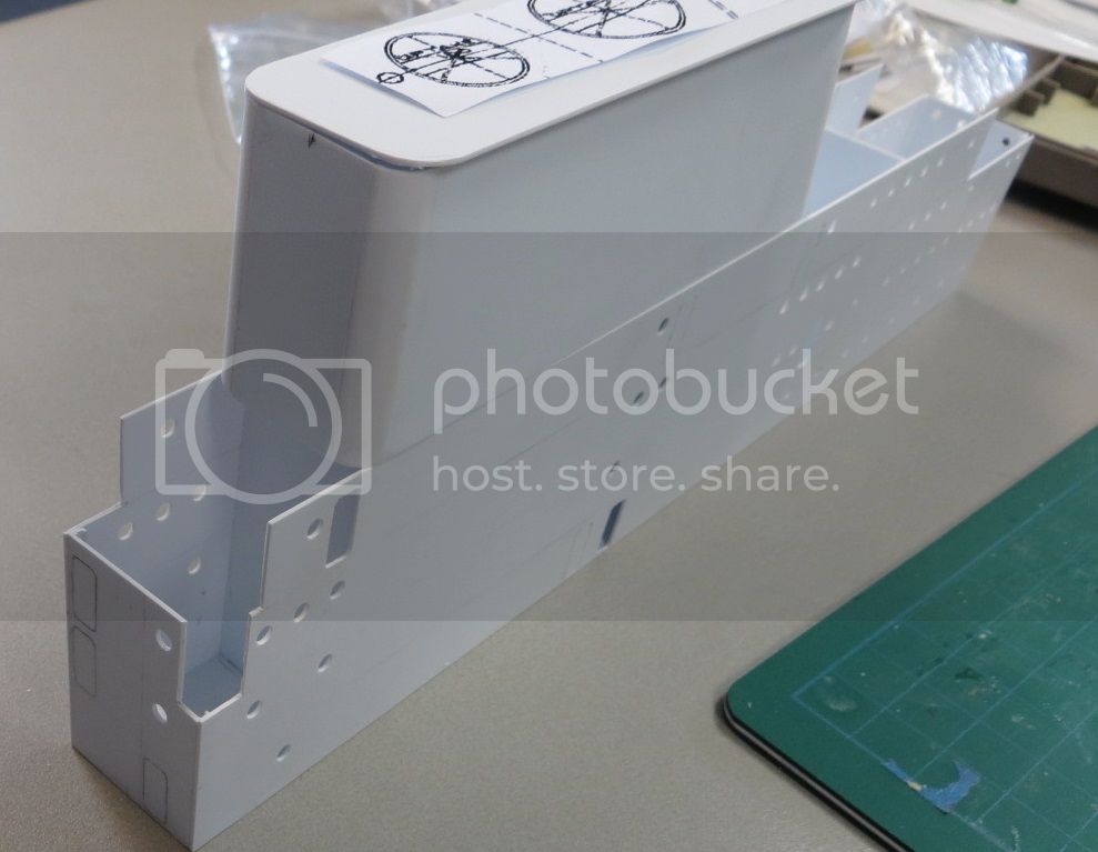 At first I had planned to build this solid, no interior, but Ive been studying pictures, and certain hatches are invariable shown open. All the ones at flight deck level, in particular, and that one on the top deck abaft the pilot house, which in fact leads to the W.C.