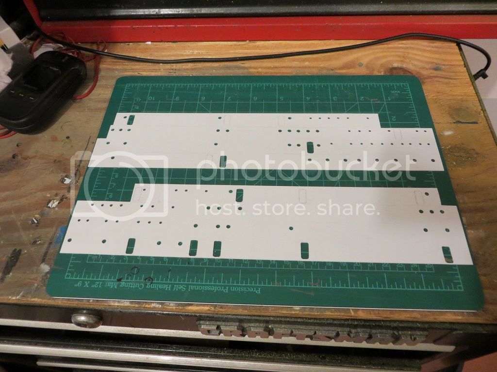 sides and ends of basic island structure made, all portholes located and drilled.