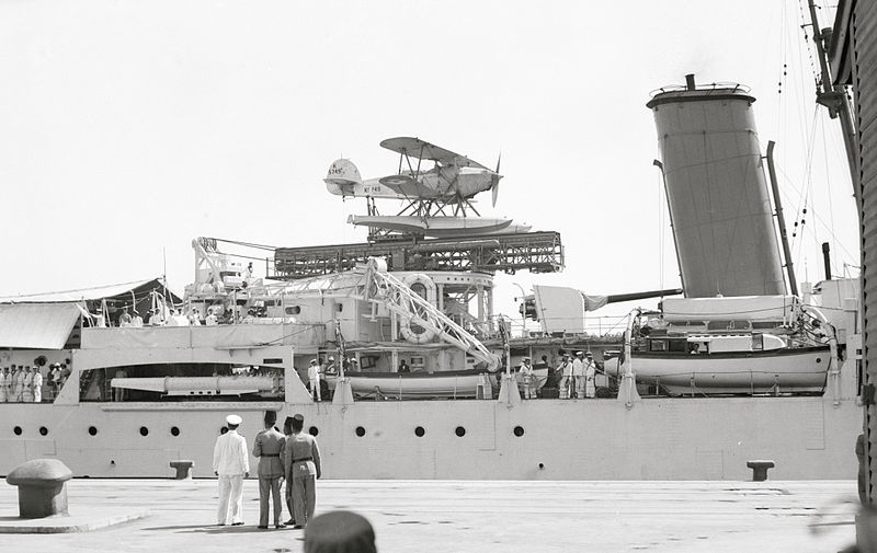 HMS Enterprise was a WWII cruiser that carried that Osprey on a catapult, Wiki has this charming photo