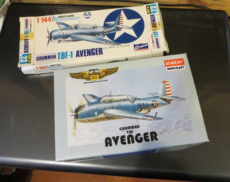 the Academy boxing is 20 years old, the Crown kit at least 30 years old. Minicraft is still stamping these out, unfortunately the only TBF model in 1/144th scale.