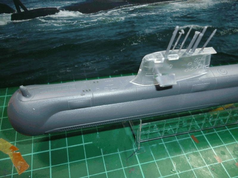 A little more work done to the VII D.....added fore and aft dive planes, rudders and propulsion.
