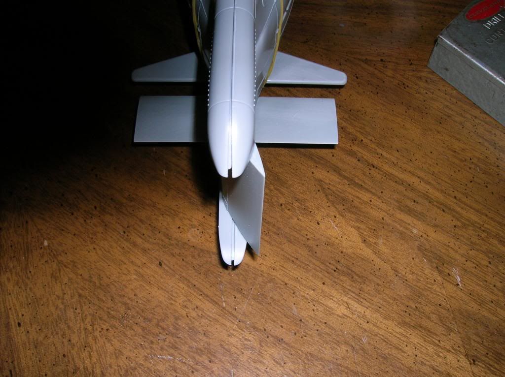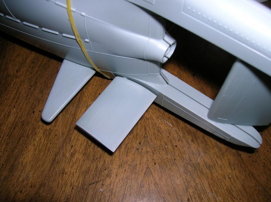 Here is a photo of the aft dive plane inserted into position (note: the hull is just held together with rubber bands).
