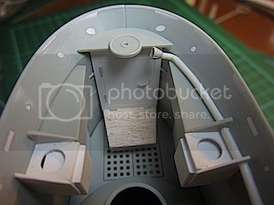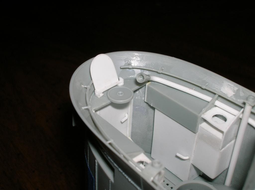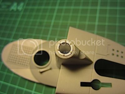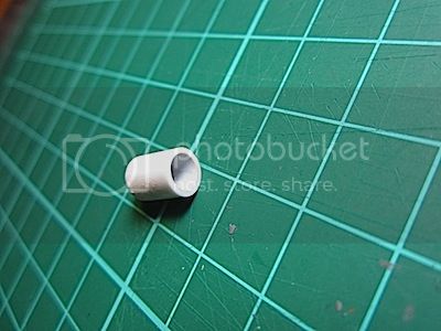 I drilled a hole in the disc at the back of the mounting tube, then inserted the 'horn'. I cemented another piece of tubing over the end of the horn and closed it off with another styrene disc.