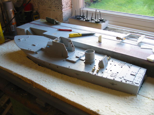 Well started on the base for my PT boat by cutting out the hull shape and sculpting the insulation foam