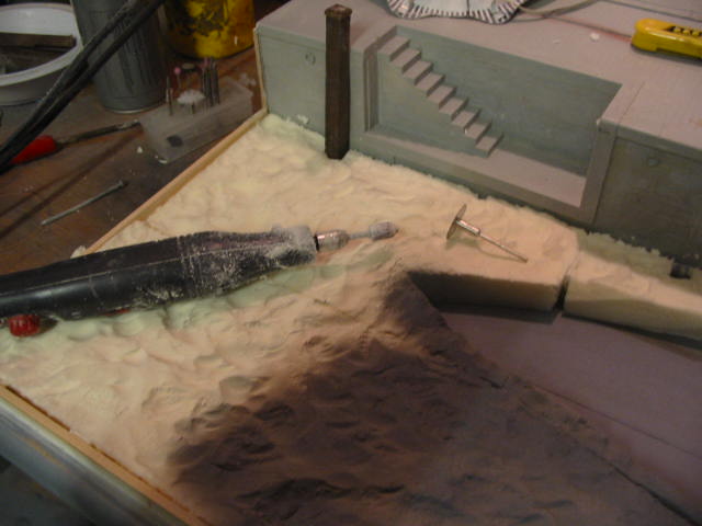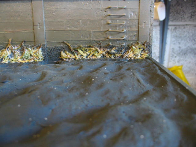 Small update not so good with things when working nights I have started adding the seaweed to the dock walls I think I may have over done it but will be abla to thin it out later when the PVA glue has fully dryed. You can see better in this photo the texture I have made with the mini drill to the wall as the kit parts come fairly flat faced.