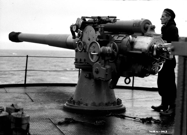 Key things here are the squarish carriage, and the recuperator mounted to the top of the barrel. The US 4"50 cal used on Clemson class DD's had the recuperator mounted below the gun.