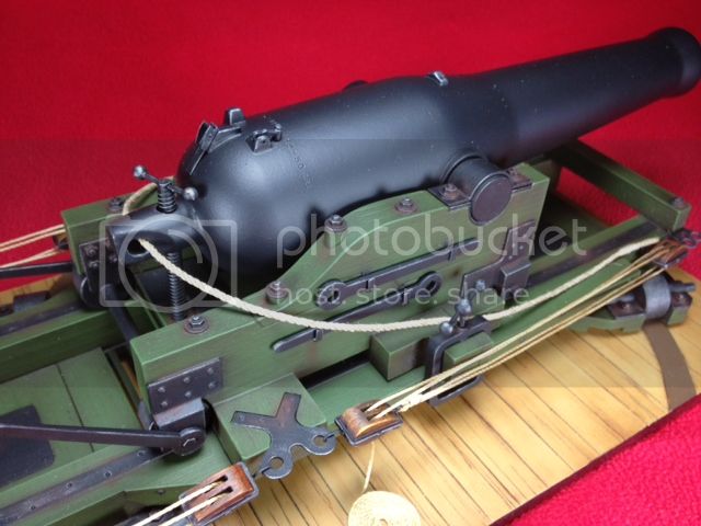 These are photos of my newest project -- Verlinden's 1/16 scale 11 Inch Dahlgren Naval Gun. In typical Verlinden fashion, it was a bear to make. Warped parts, huge pour plugs, and useless instructions. Regardless, I'm very happy with the finished product. Everything from the deck to the carriage to the tube were painted with Testor's acrylics and weathered with washes of raw umber oil paint.