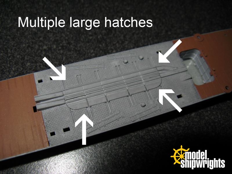Two large searchlights and five small lights mount into holes in the upper deck. Again, just how small are the small ones?