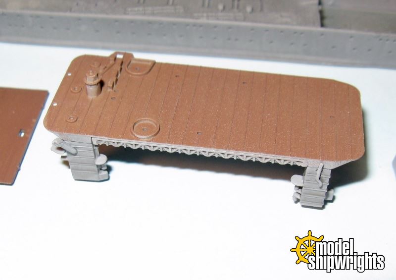 Two paravanes are secured to the deck on both sides of the stack. After all of the above is added,