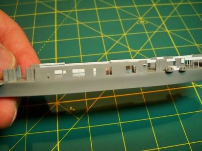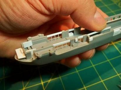 I also added the distinctive fairing underneath the port quarter 40mm quads (installed during the 1943 refit) and the small clipping room behind them on the main deck level.