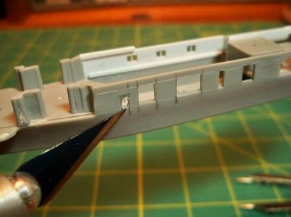 After marking off the locations according to the plans, I cut them out with a hobby knife. Trimming the soft plastic away was easy, the only challenge being to make the openings square and even.