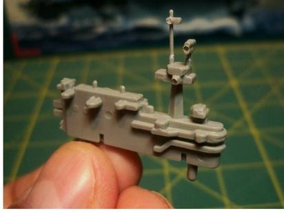 Though not precisely correct in size, the radars from the smaller ship types in 1/700 scale still work well for a 1/1200 scale carrier.