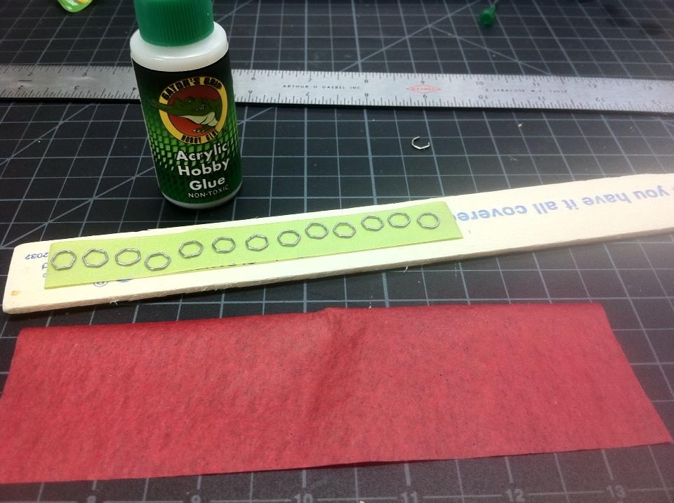 Next up was making the life rafts. I twisted wire solder around a hex bit, glued two rings together and then glued that on tissue paper for the bottom.