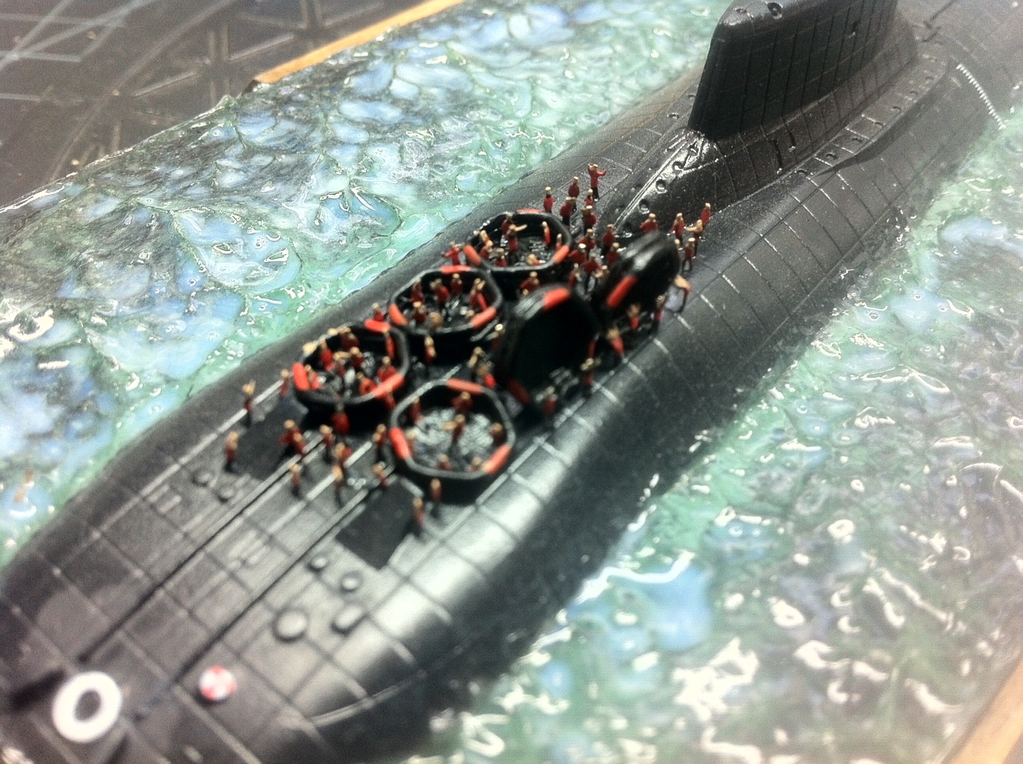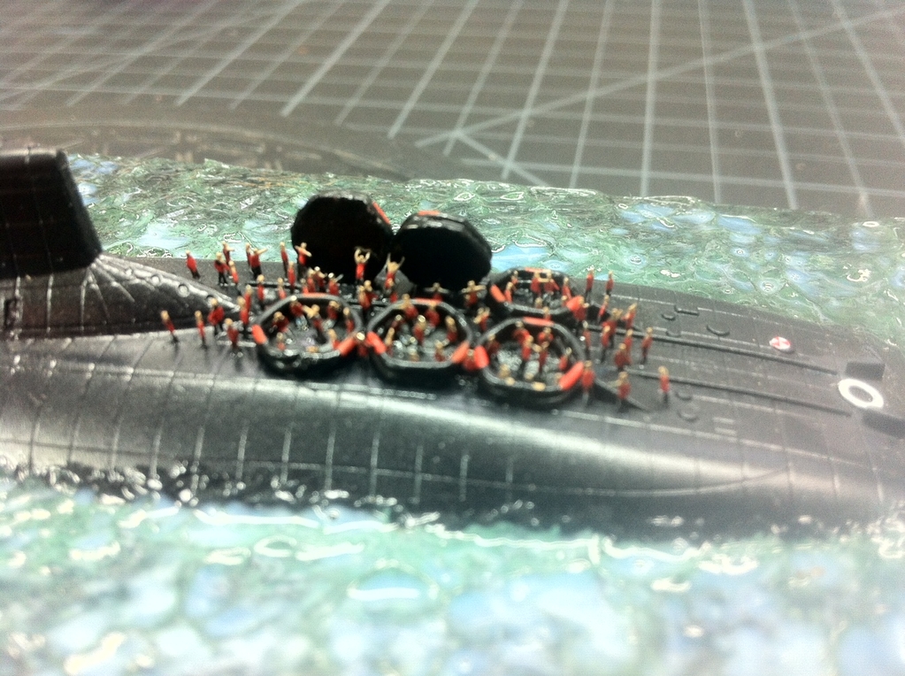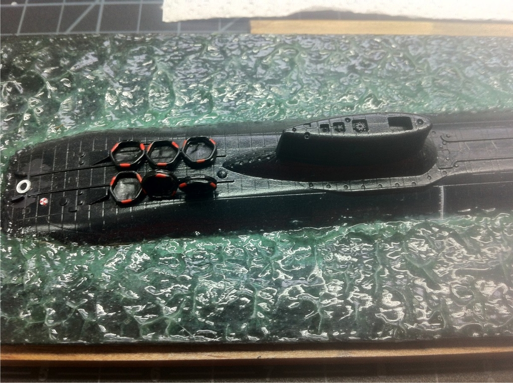 After giving the model a coat of Future for that rain dampened look, I glued the life rafts on the sub.