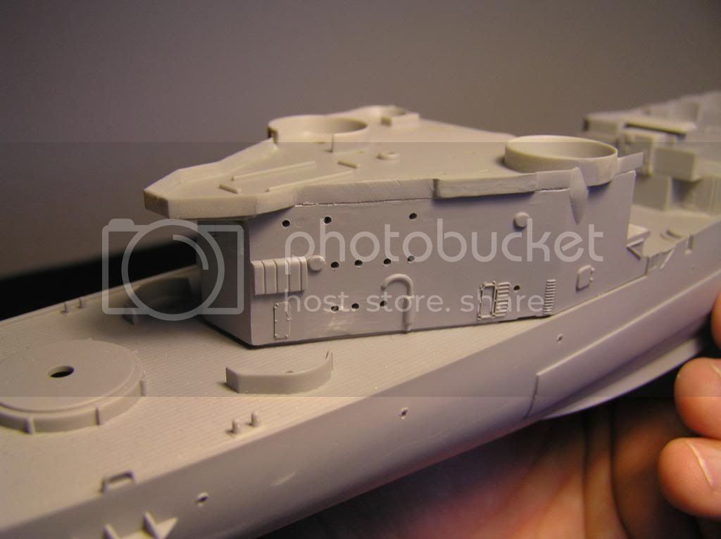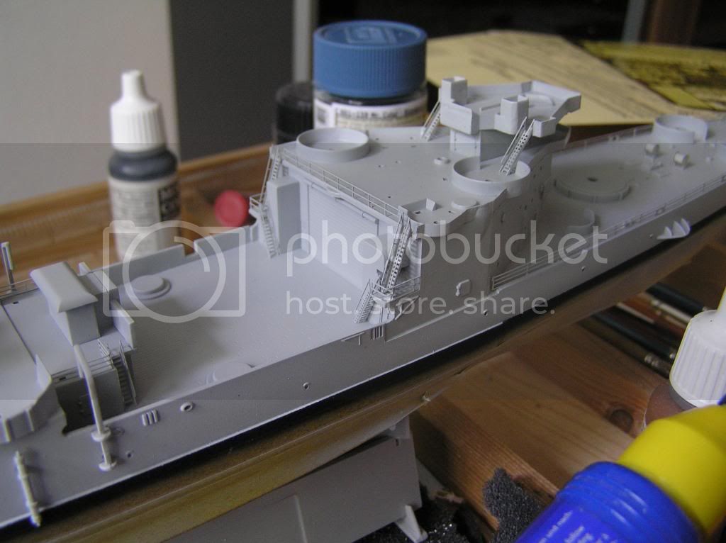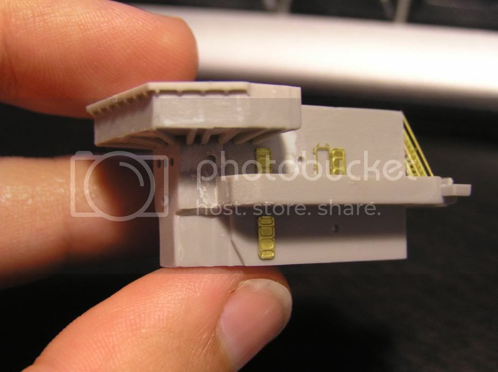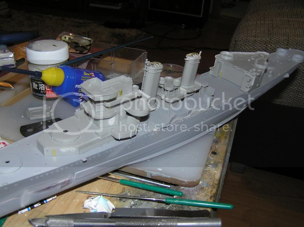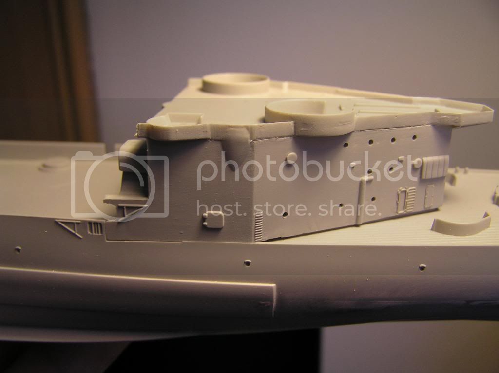 Whoa! You're right Naseby, the fit between the aft superstructure/hangar and hull is pretty bad... one way to over come it might be to sheet over the area with some styrene to bring it to the correct level. The only catch is the detail will need to be removed first and re-applied after.