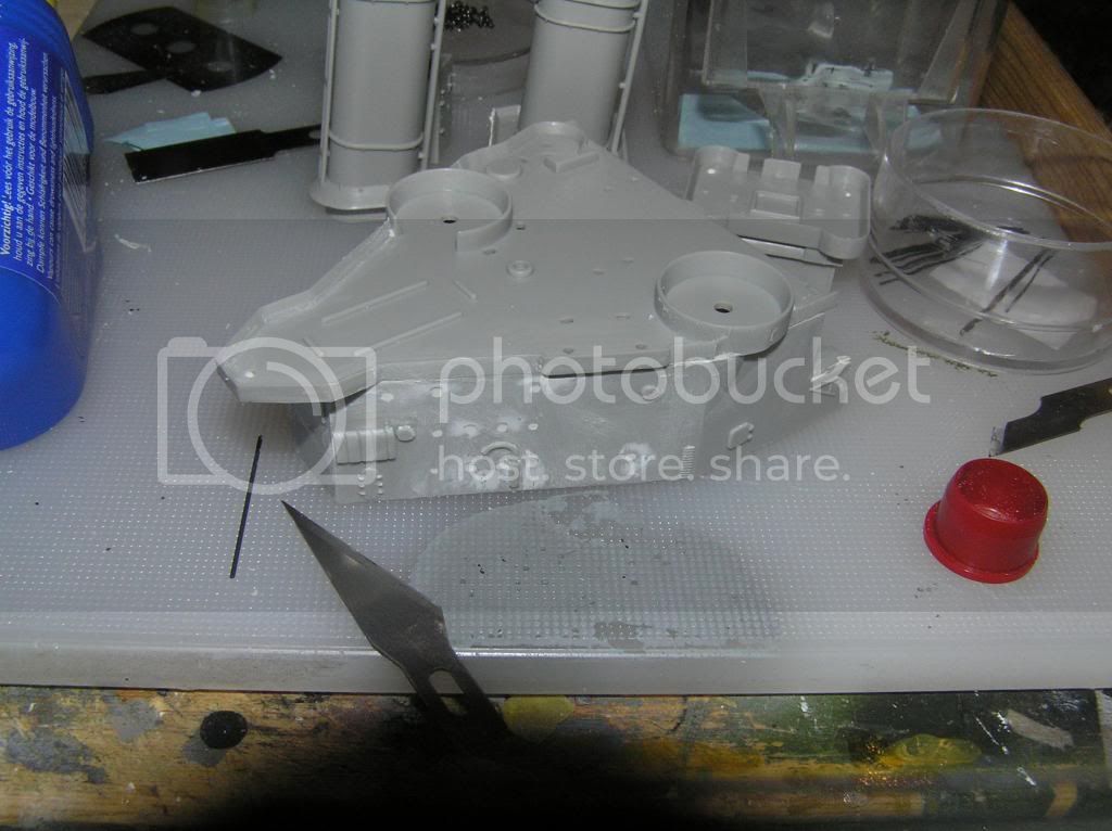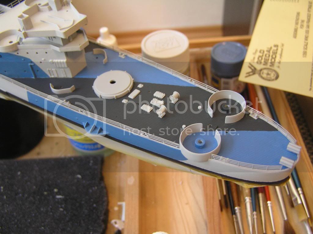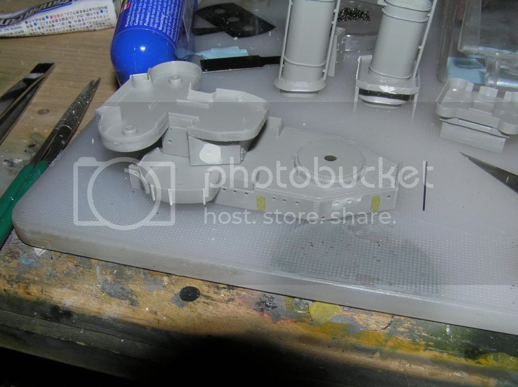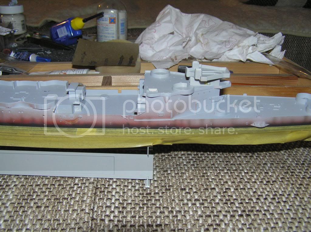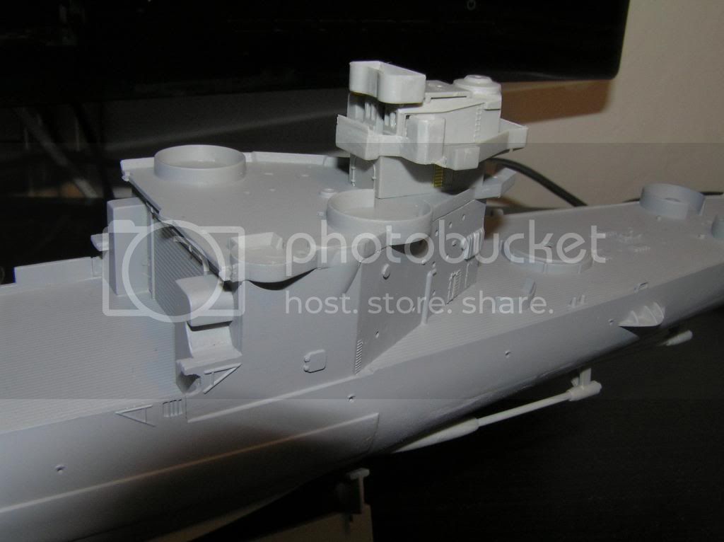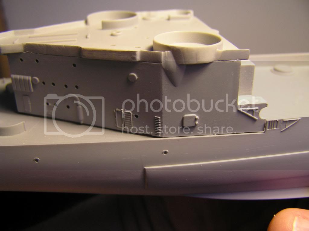 Whoa! You're right Naseby, the fit between the aft superstructure/hangar and hull is pretty bad... one way to over come it might be to sheet over the area with some styrene to bring it to the correct level. The only catch is the detail will need to be removed first and re-applied after.