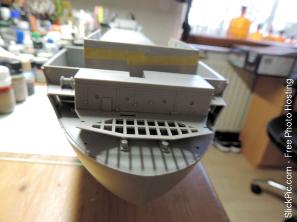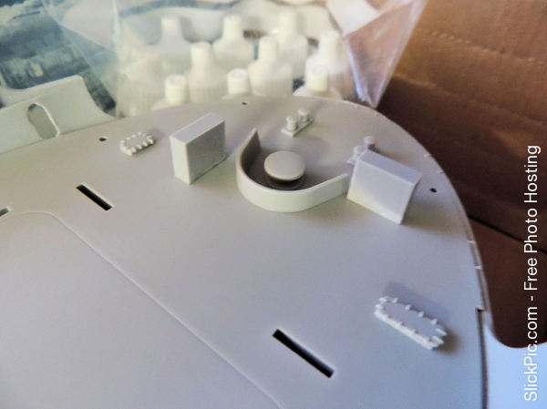 On the other hand Merit's rendition doesn't have 5 elevators or an angled flight deck or a swimming pool behind the bridge so I don't think there is a serious risk of anyone mistaking the kit for the Titanic or the Cutty Sark.