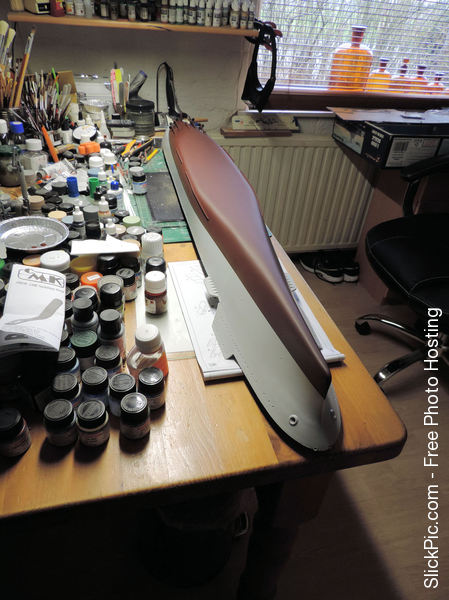 The Big B took 1 jar of Lifecolour Hull red and 4 jars of Lifecolour Hellgrau. It also took about 1 jar Dunkelgrau and a jar of black. The Vallejo needs thinning so goes quite a way.