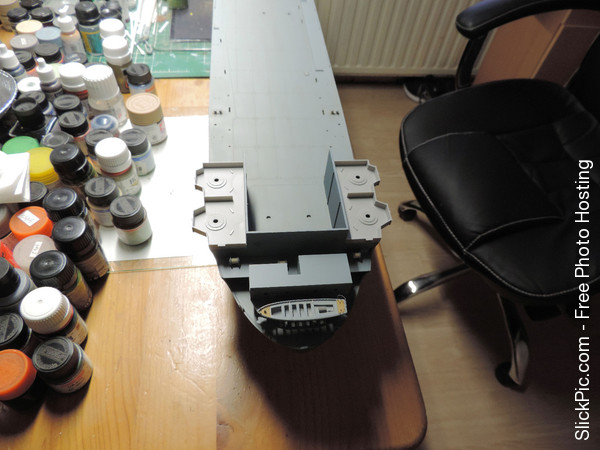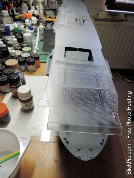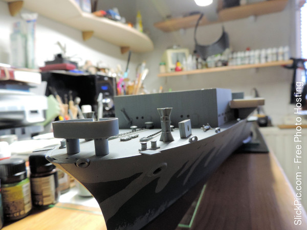 The F-4 looks quite nice in the grey/blue skin. I have started the weathering and streaking build up on the hull: