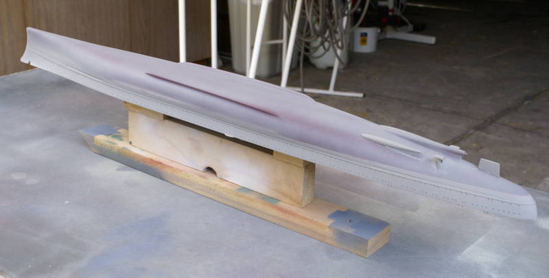Close inspection of the hull has revealed a few areas that needed some filling and sanding.