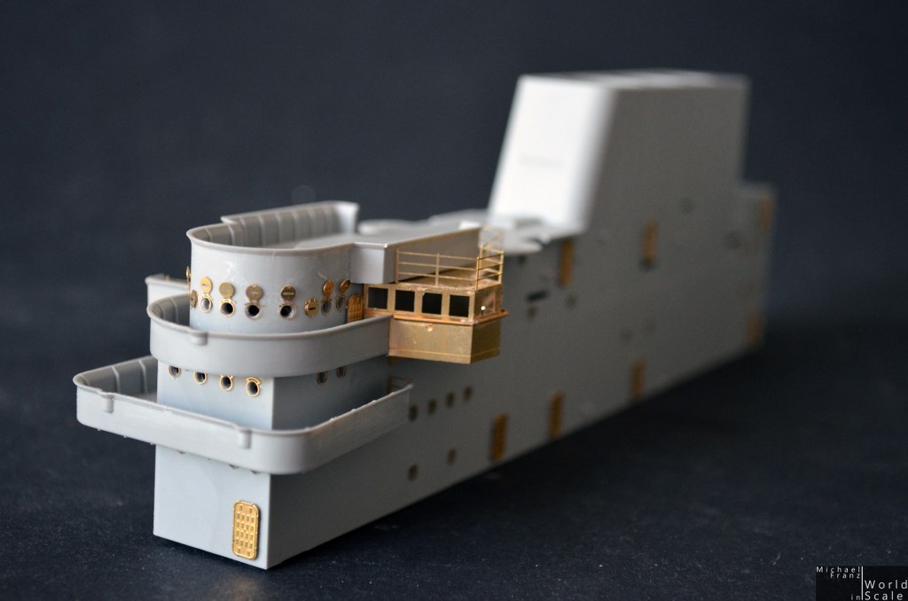 Next task.... the bridge... firstly all portholes opened.... etched frames added... and doors.... then started with the bridge and the further add on parts......