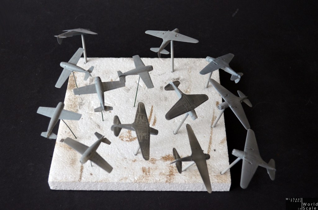 The only PE-parts which will go on this airplanes are the undercarriage and antenna. The wings remain untouched, also no cockpit for these airplanes.