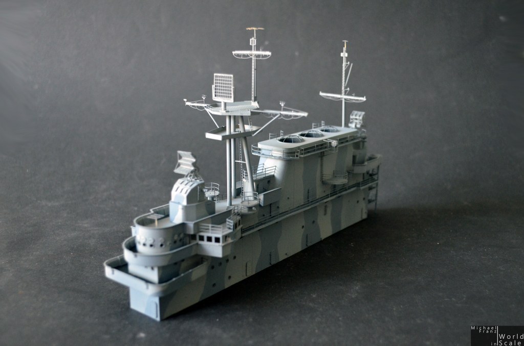 First painting was 5-H Haze Grey byLifecolor. Once dried I painted the next darker color (5-O Ocean Grey) on it, followed by the decks in 20-B Deck Blue. Finally all parts were painted once again with airbrush in 5-0 Ocean Grey.