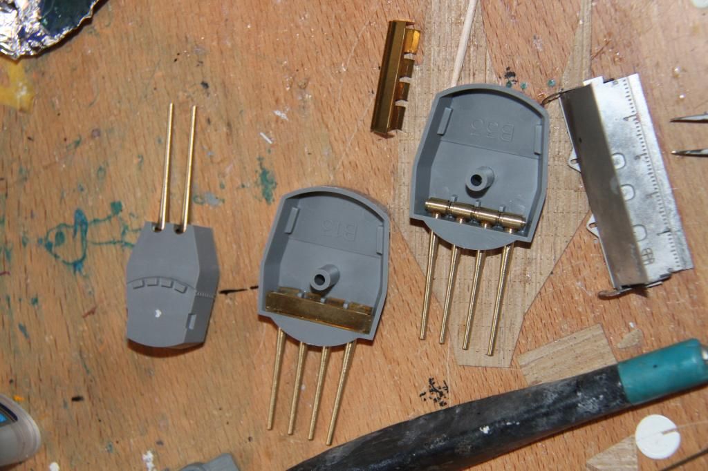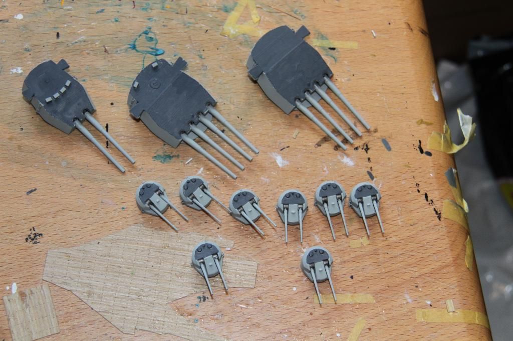 All the 5.25" mounts have had their etch fitted, so on with the main turrets.