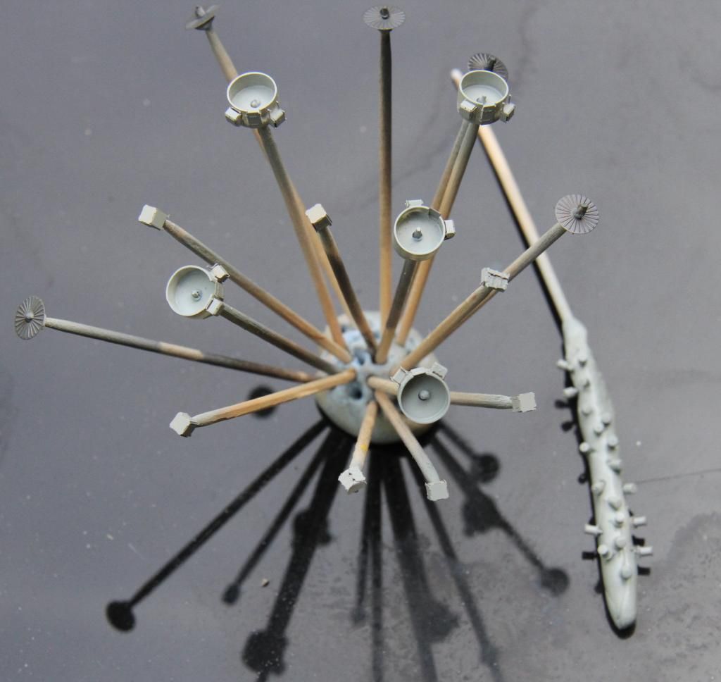 There are five gun tubs on the quarterdeck, the resin tubs have been adorned with etched boxes and door.
