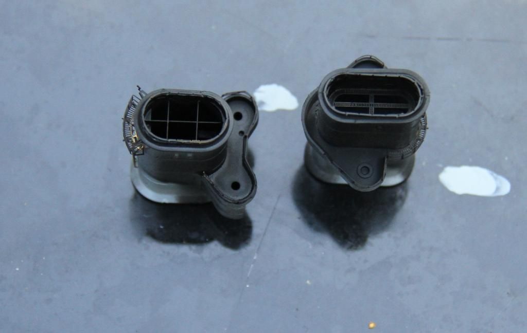 The interior of both funnels sprayed black.