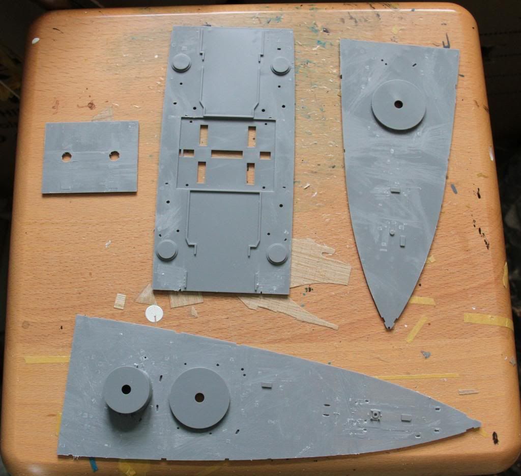 Apologies, no intention to scare anything out of anybody, most Wood decks fit with minimal or no modification modification, but this is to cover a sister ship at a different time, so makes sense to strip the all the existing detail, rather than mess about trying to remove snip odd bits out and add some new. You may want to hide behind the sofa for the next  pic....