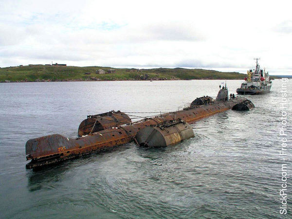 These for example are photos of a Soviet submarine that was left to rot for several years near Murmansk. It sank while under tow to the breakers yard taking the skeleton crew of runners with her.