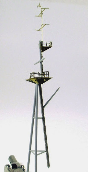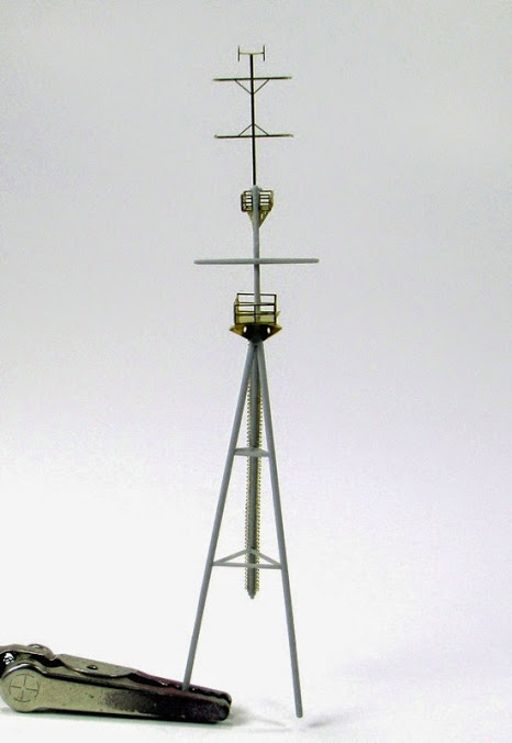 Andrew - Thanks buddy! Hope the small "fix" keeps you going for a bit! Any tips on the mast? Well patience is needed with the long ladder sections. They fold up easy but they are long and can bend just as easy. Although I used CA (thin) to attach the ladder, if you use PVA (white school glue) you will have more working time, it dries clear and the end result is just as strong. The starfish platforms need the same attention with patience. I thought of replacing the supports with brass rods, which would be easy, but the molds are clean and went together well.