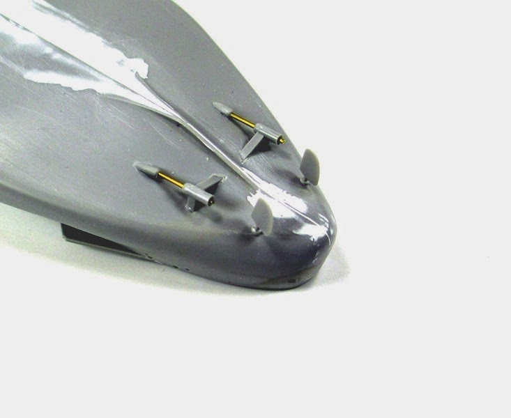 I cleaned and test fit the rudders as well as drilled out the prop shaft brackets to receive some some brass tubing. This was not required really as the kit parts were not too bad at all, just something I like to do I guess!