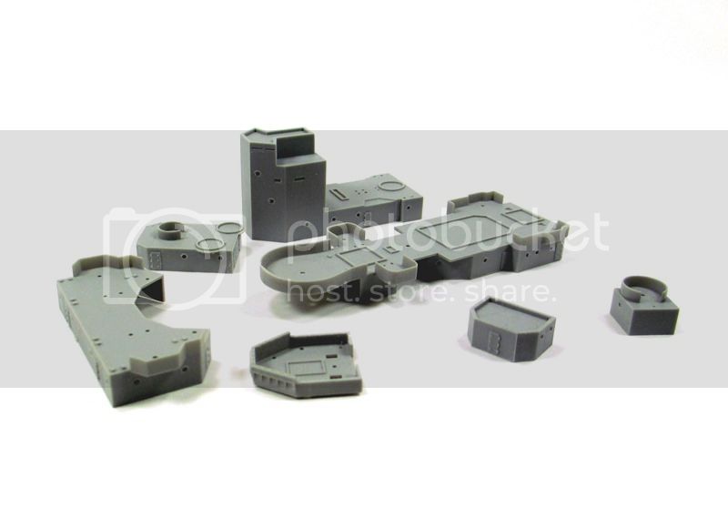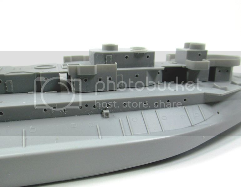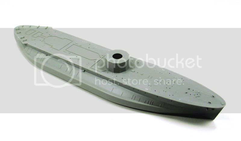 Pretty straightforward; two-piece hull and the weather deck. Everything went together okay with the exception of the hull sections. I noted in my soon to be published review the two pieces to the hull fit well together however there would be a small gap that will need tending to...nothing to out of the ordinary when it comes to molded hull sections. The main deck section fit like a dream though.