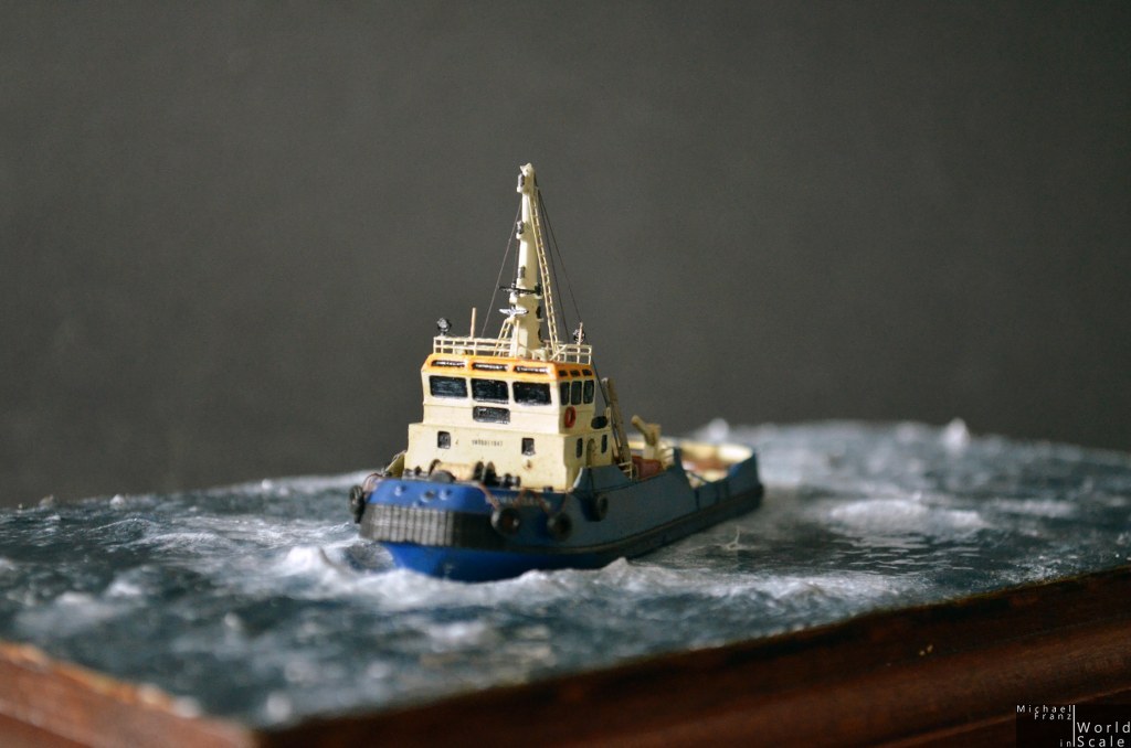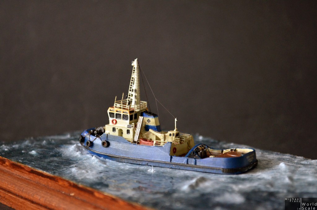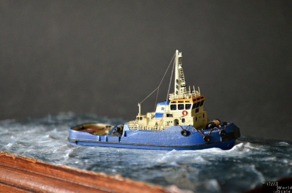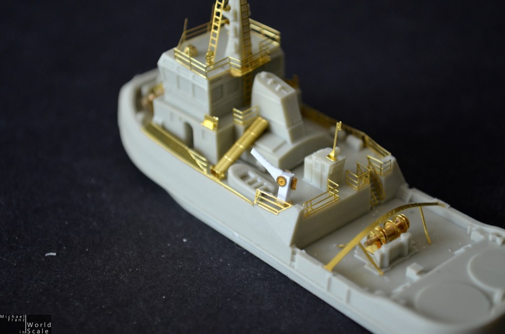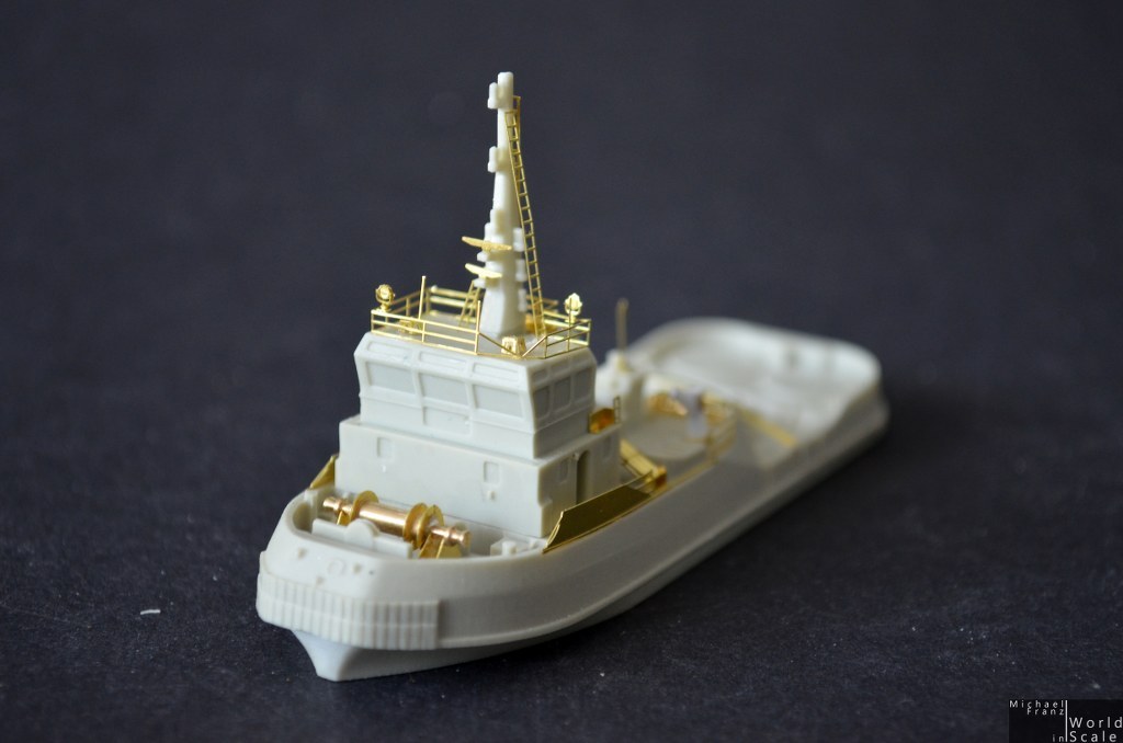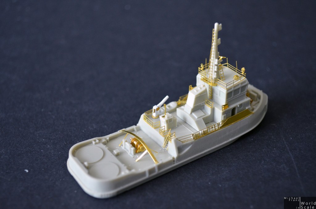 here a little tug boat called "Rowangarth". It is a Resin-kit from Orange Hobby, including two brass parts and a small sheet of PE-parts and decals... high quality, good details I think....