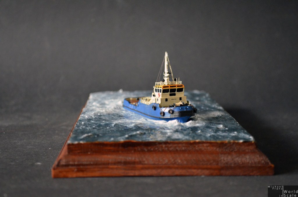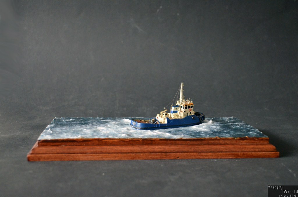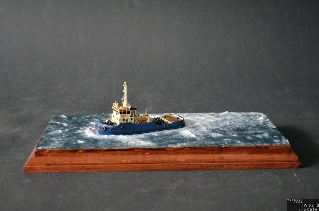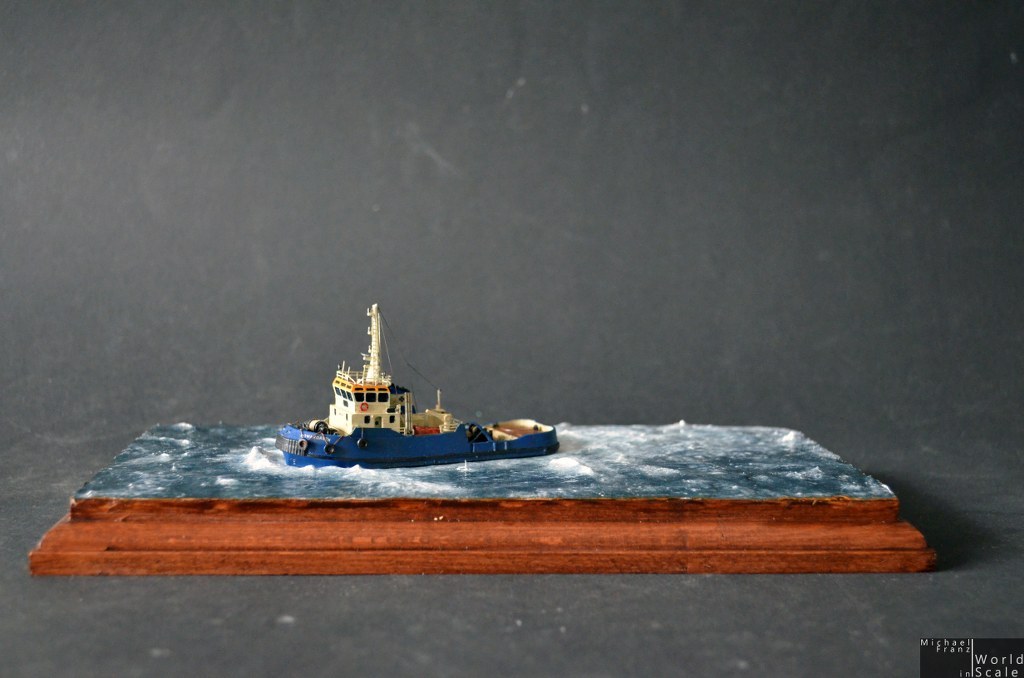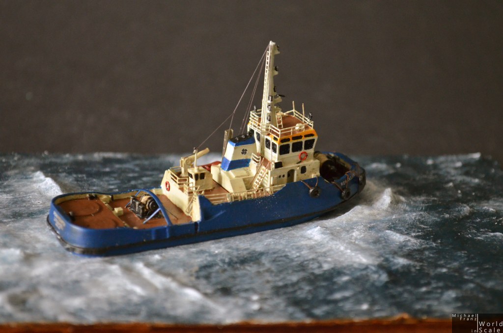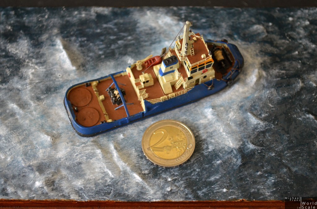 here a little tug boat called "Rowangarth". It is a Resin-kit from Orange Hobby, including two brass parts and a small sheet of PE-parts and decals... high quality, good details I think....
