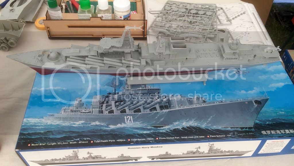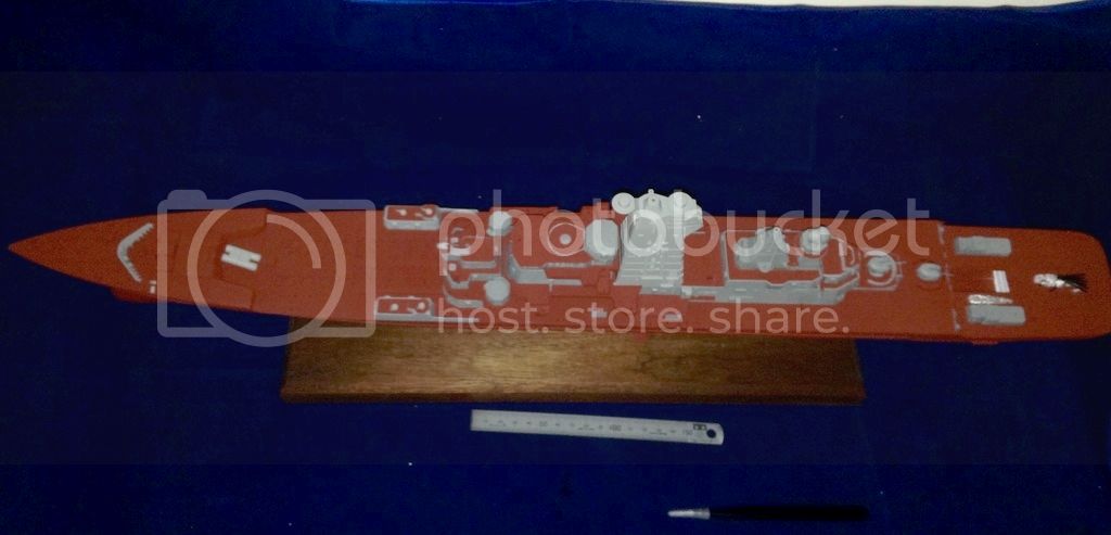 Any way back to the Kirov, some of the superstructure has been painted grey and assembled to the deck others are still test fitted so as to allow me to detail paint. Base and hull are drilled and provisional mounts loosely fitted, I have some used .22LR cases which if I can get them drilled I'll use as mounts although still keeping the brass tube running through them. Next step is the boot topping and hull grey. So here is a photo of where I'm at so far, most of the superstructure is just test fitted.