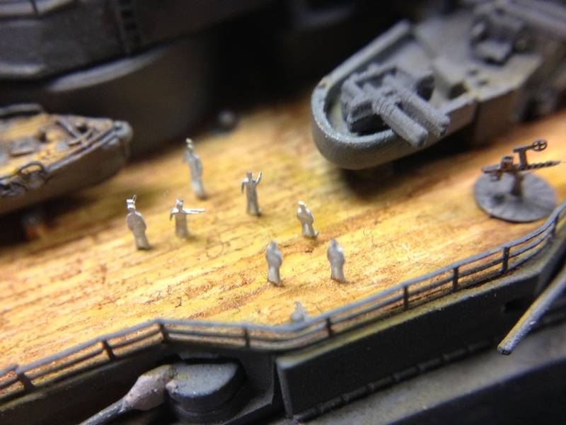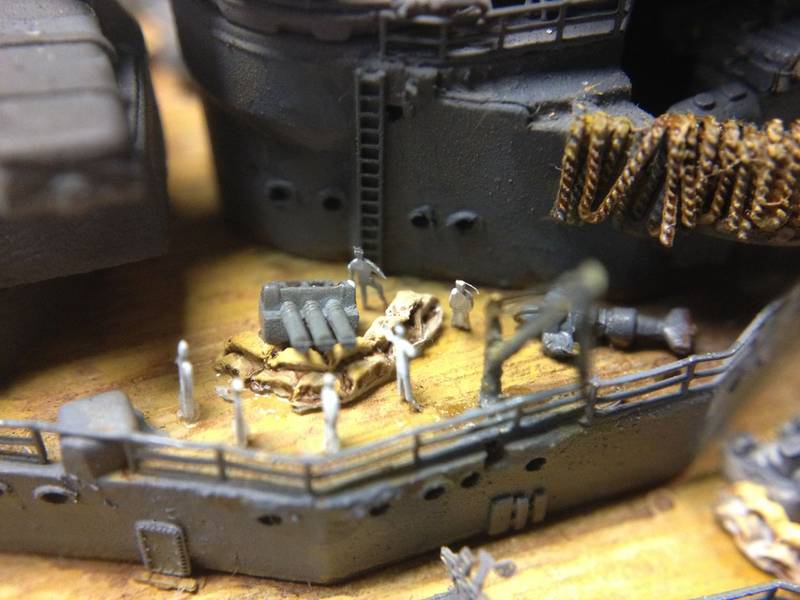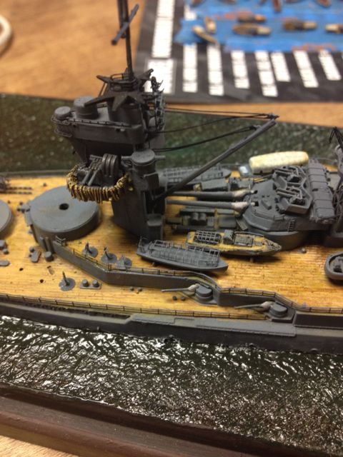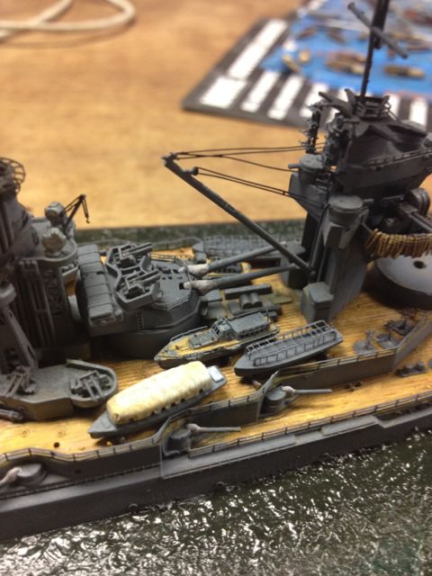 I'll try to take some more photos. I have already glued the AAs and some of the boats in place. Next is to complete the search lights and affix both ladders and railings.
