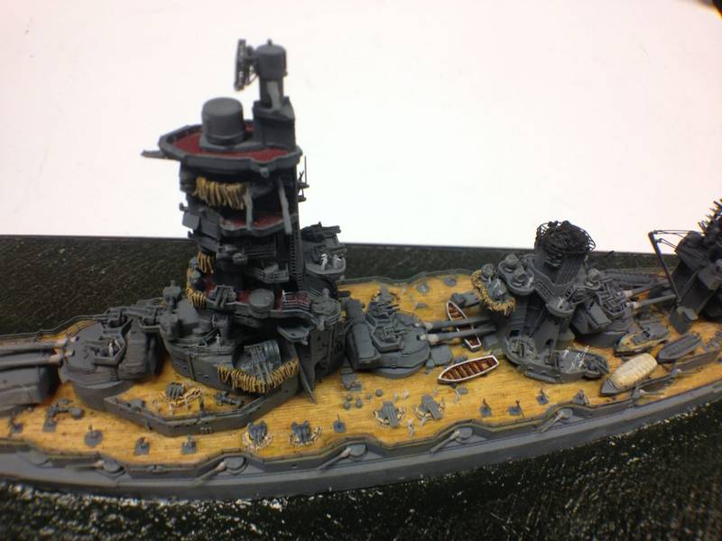 all in all i feel like i am getting close. there are still some lights, stairs radar, planes and then .... the rigging. i always feel like i could keep going on these- so many options to pursue and so many possibilities to consider, but given the nature of the campaign's deadline i don't want to push it any further- after all i still have the fuso and yamato in the paint booth.