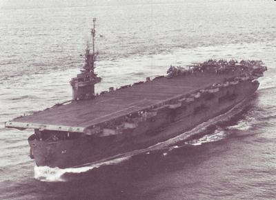 The following day, warning of another air attack sounded. As her fighters prepared to take off, they found intense antiaircraft fire of the entire task group covering their flight path. Nevertheless, in a harrowing feat termed by Captain Goodwin as "another shining example of the adaptability and courage of the young men of our country," eight pilots of Composite Squadron 10 did take off to help repulse the aerial onslaught.